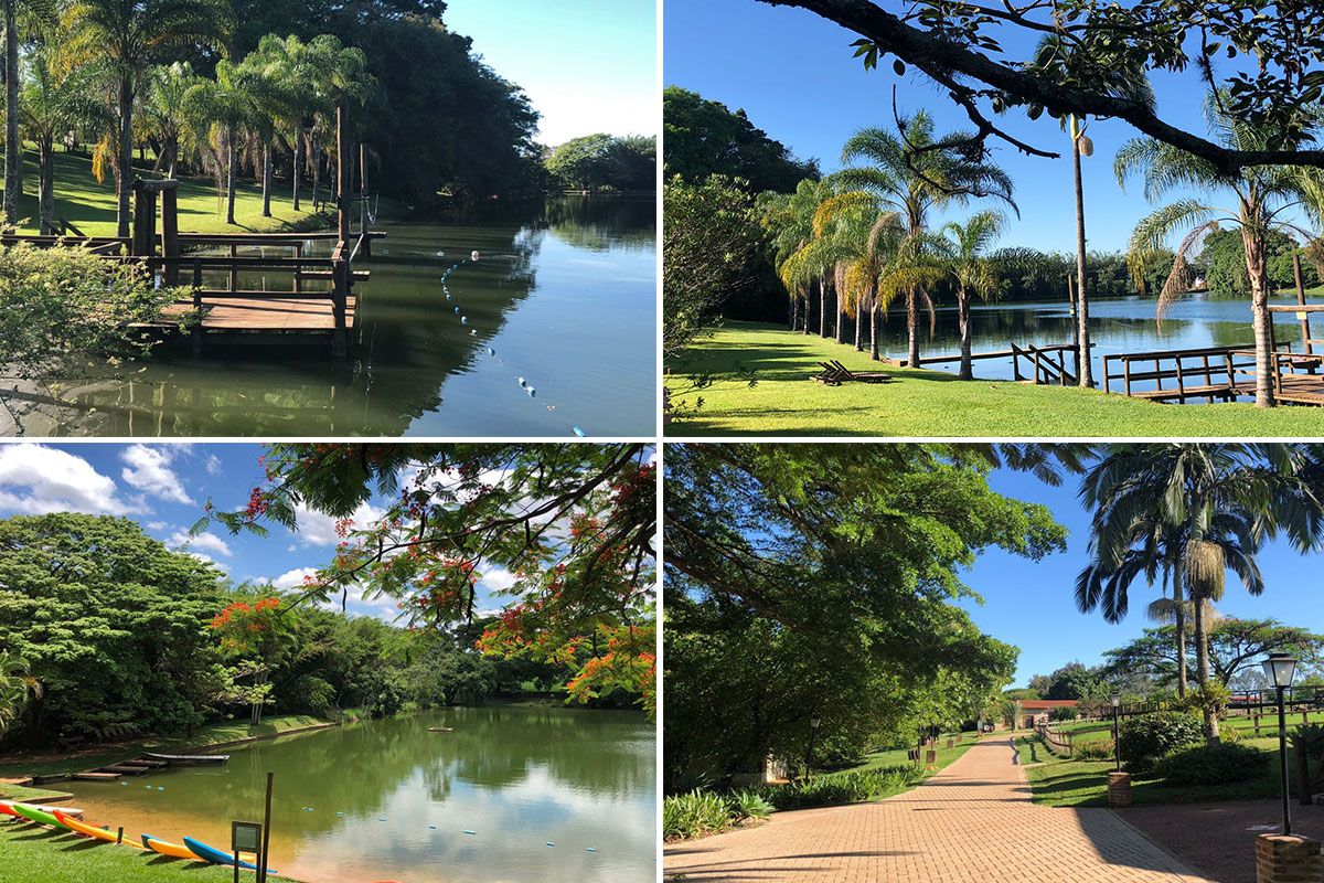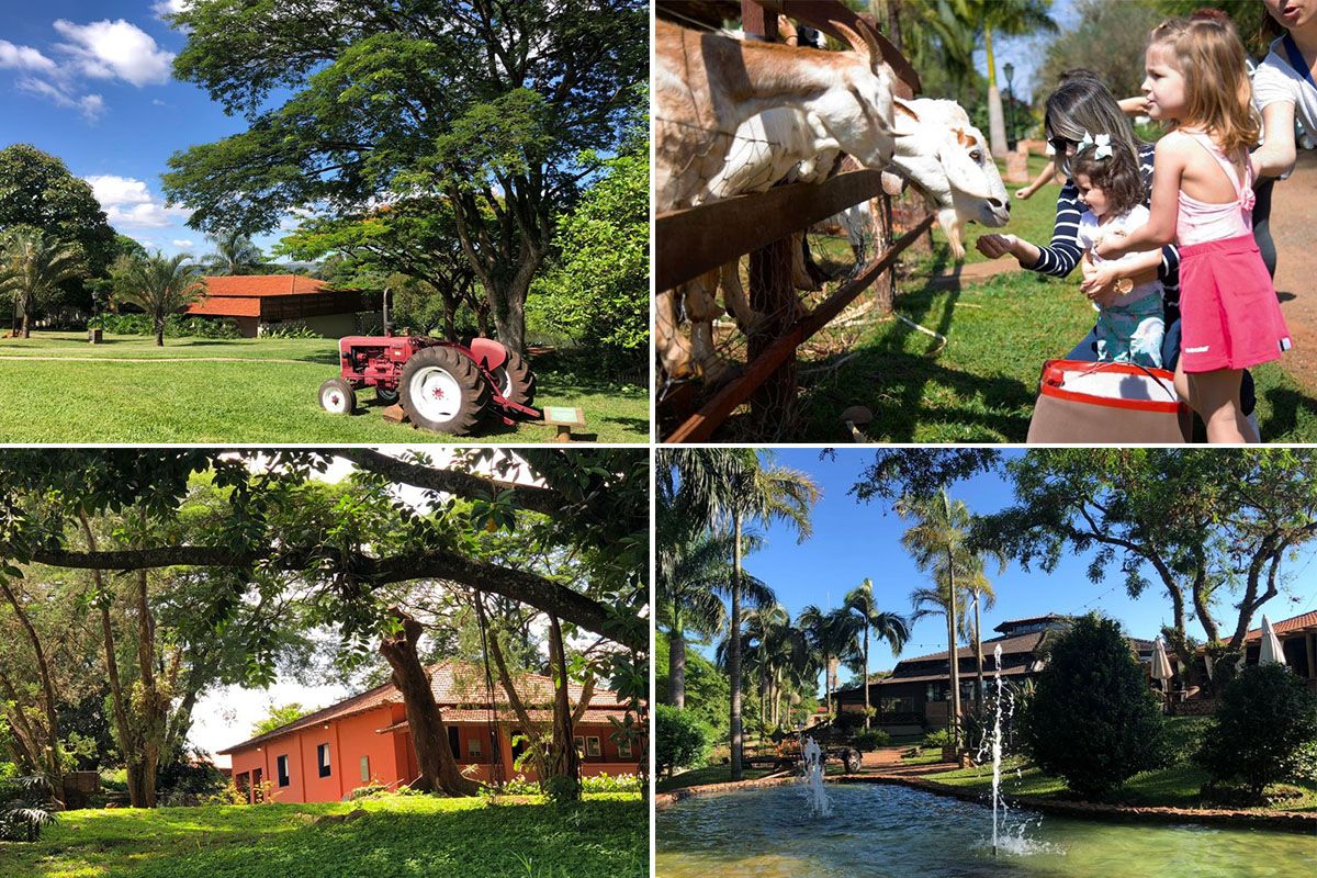 A estrutura do hotel combina sofisticação e rusticidade, com apartamentos revitalizados que mantêm a atmosfera de fazenda, mas oferecem todo o conforto moderno, muitos deles são voltados para famílias, com dois ambientes, varanda, rede e vista para o lago ou para o majestoso ipê rosa que adorna o cenário. Para os hóspedes, há ainda três piscinas climatizadas, uma delas aquecida e coberta, outra infantil e uma semiolímpica, além de uma piscina natural de mina dágua, lago para caiaque e pesca esportiva, tirolesa, barco, bicicletas, triciclos, campo de futebol, quadra de tênis, bosque para caminhadas, parque infantil, redário e um espaço relaxo com jacuzzi, hidro e ofurô. O restaurante próprio oferece pensão completa, com café da manhã, almoço, chá da tarde e jantar, sempre acompanhados de água e suco do dia, valorizando sabores regionais em receitas preparadas com esmero.