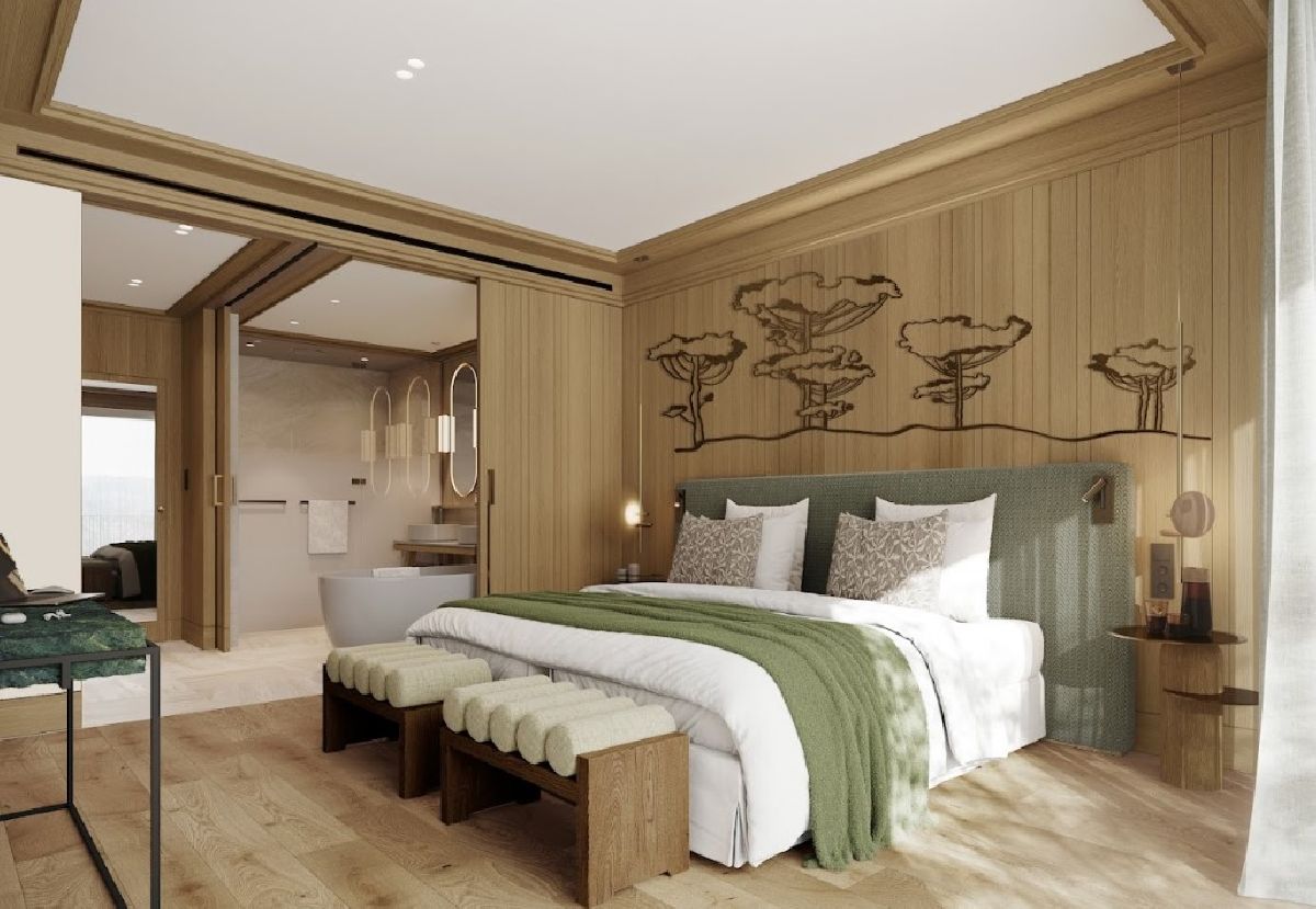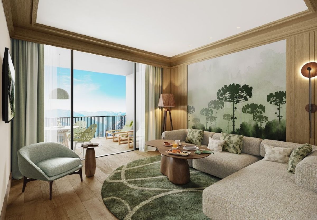 Instalado dentro do Complexo que possui uma área total de 2 milhões de m², o resort ocupará um espaço de 200 mil m² e contará com 250 acomodações, incluindo 19 chalés de luxo. A unidade será dividida em zonas específicas para diferentes perfis de hóspedes: uma área dedicada às famílias, com Mini Club, playground, piscina, restaurante principal e chocolateria; além de uma zona exclusiva para adultos, com piscina zen, restaurante gourmet, spa completo, academia e espaços de bem-estar. O projeto arquitetônico é assinado pelo escritório UNYT, enquanto a arquitetura de interiores fica a cargo do renomado designer francês Marc Hertrich.