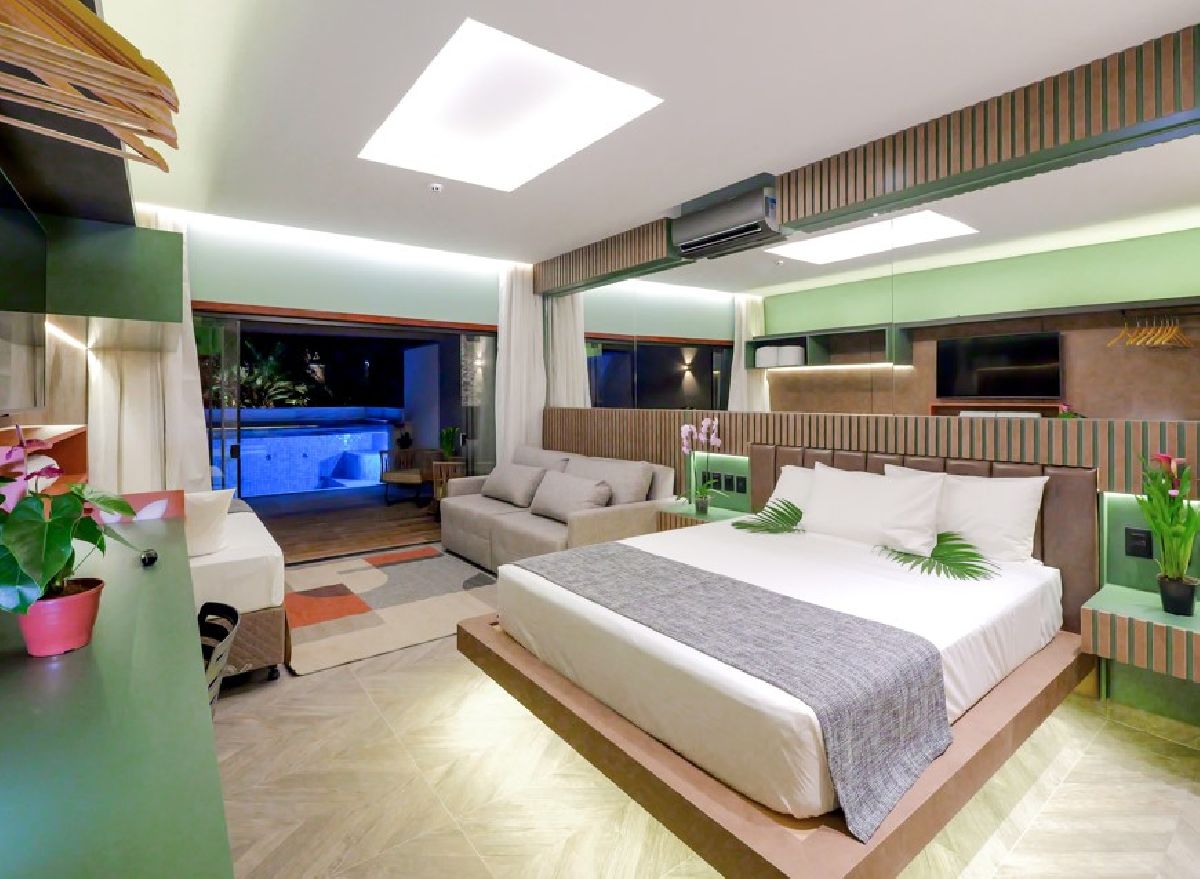 O hotel oferece infraestrutura completa, com três piscinas externas, incluindo a maior piscina com lateral de vidro da América do Sul, além de uma piscina coberta aquecida, hidromassagens, cachoeira artificial e cortina d’água. Ao todo, são mais de 720 m² de área aquática dedicados ao lazer e ao relaxamento. Entre os diferenciais, destaca-se também o Espaço Games & Lazer, com jogos eletrônicos, sinuca, playground e cadeiras de massagem, todos de uso gratuito para hóspedes.