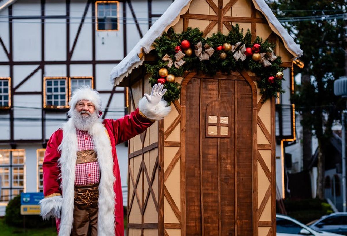 Essa mesma proposta permeia o conceito da Árvore de Natal gigante, com 12 metros de altura, que ornamenta a Praça das Flores e já se consolida como cartão-postal para quem passar pela cidade. Seja durante o dia ou à noite, quando ganha o realce de uma iluminação cênica, a peça de design autoral homenageia souvenires decorativos alemães. O entorno combina outros elementos clássicos natalinos, enriquecidos por registros que mostram lembranças afetivas e valorizam a identidade germânica, com hábitos, tradições e paisagens típicos da região desta colonização.